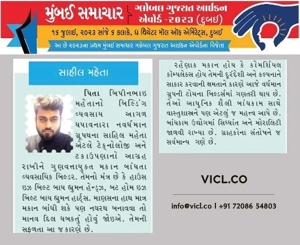 “Global Gujarati Icon Award 2023 - Dubai” held by Mumbai Samachar & Khaleej Times.